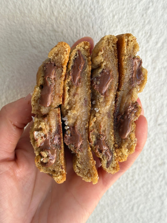 Each of our cookies is homemade with lots of love and creativity, hand rolled, baked until soft inside and crunchy outside. We only use the best ingredients, and want to give you a unique experience with fun flavour combinations!